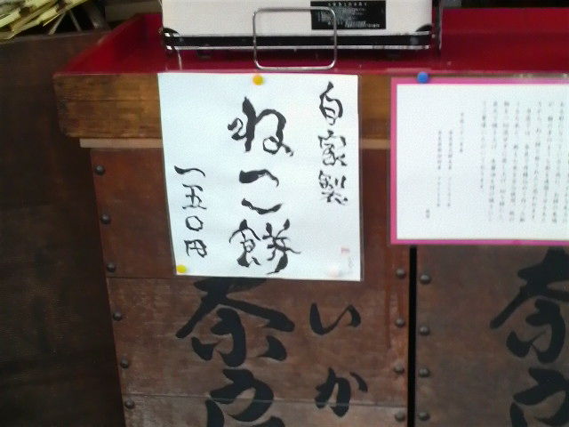 お天気にも恵まれて、久しぶりの旅行楽しかったですv 早朝に出かけたにもかかわらず、奈良に着いたのはお昼過ぎ。 一日目は平城宮跡会場を堪能しました。 会場で見つけたせんとくん 二日目はお目当ての正倉院展! 「螺鈿紫檀五絃琵琶」美しかったです!!! 感動しましたー。 国立博物館に入場するのに45分待ち、入ってから「螺鈿紫檀五絃琵琶」を見るのに45分待ち。(笑) いや、でもそれだけ待ってもあの実物を見られた瞬間の昂揚感はなんとも言えないです。 他の展示物も、すばらしかった! 出来ることなら一日中眺めていたかったですー。 国立博物館を後にしたのが、午後2時を過ぎていて、予定では興福寺→薬師寺→唐招提寺と巡る予定だったんですが、結局薬師寺しかいけませんでした。(泣) で、薬師寺を出たところで見つけたコレ! どんなおもちなんだろうー? 残念ながら、お店の前を通りかかったのが拝観時間終了後で、すでにお店も店仕舞いの準備中。 ねこ餅も「販売終了」なってましたー。(泣) 奈良にお住まいの方でご存知の方がいらっしゃったら、どんなものか教えてくださいv(笑) 穏やかな秋の日差しの下悠久の風に吹かれ、久しぶりにのんびりできた休日でしたv 天平文化のご仏像のお顔は、本当に優しく流れるような美しさがありますよねー。 法隆寺の弥勒菩薩像とかも、また見に行きたいなー。